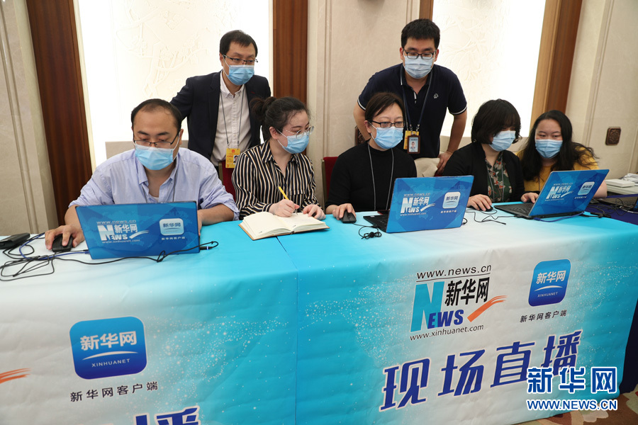 ??? 5月20日,全國政協(xié)十三屆三次會議召開新聞發(fā)布會。大會新聞發(fā)言人郭衛(wèi)民向中外媒體介紹本次大會有關(guān)情況并回答記者提問。圖為本網(wǎng)記者在新聞發(fā)布會現(xiàn)場做直播準(zhǔn)備工作。新華網(wǎng)記者?王翰林 攝