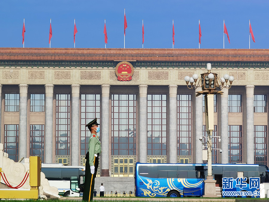 十三屆全國人大三次會議22日上午9時在人民大會堂開幕,新華網(wǎng)進行現(xiàn)場直播。圖為人民大會堂外景。新華網(wǎng) 翟子赫 攝