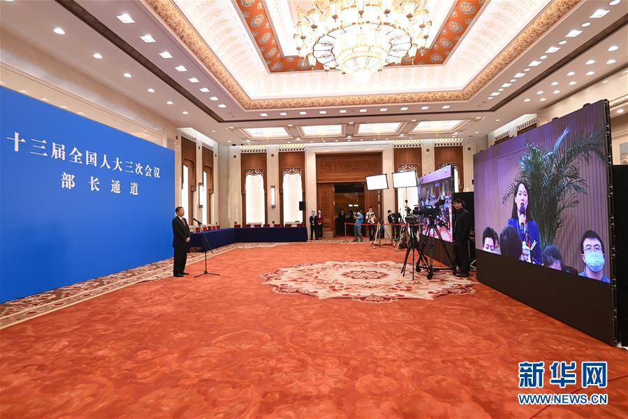 5月22日,第十三屆全國人民代表大會第三次會議舉行首場“部長通道”采訪活動。這是國家發(fā)展和改革委員會主任何立峰通過網(wǎng)絡視頻方式接受采訪。 新華社記者 陳曄華 攝