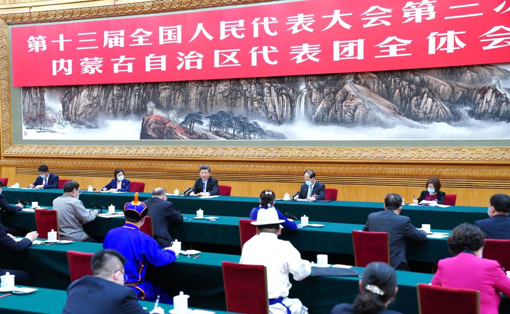 2020年5月22日,習(xí)近平參加十三屆全國(guó)人大三次會(huì)議內(nèi)蒙古代表團(tuán)的審議。新華社記者 謝環(huán)馳 攝