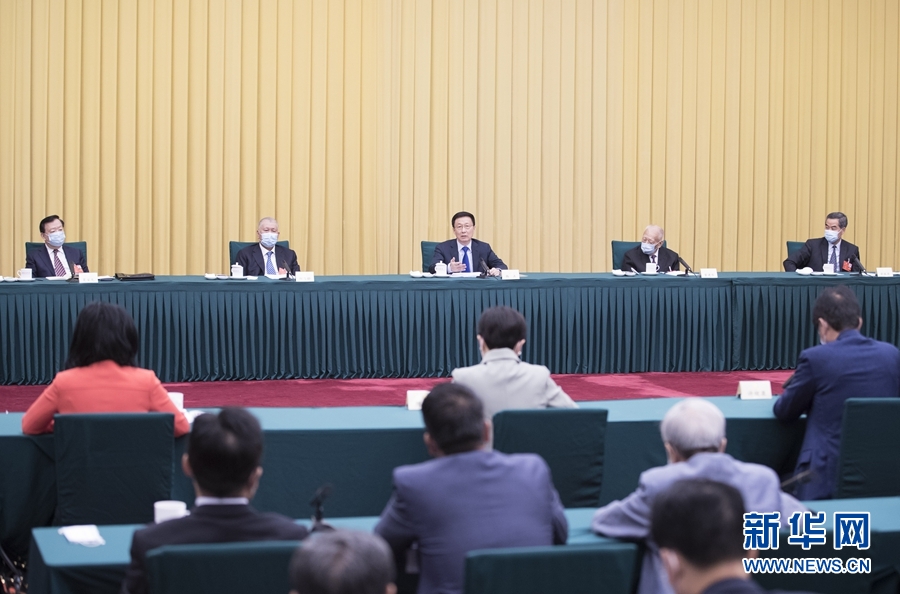 5月23日,中共中央政治局常委、國務(wù)院副總理韓正看望出席全國政協(xié)十三屆三次會(huì)議的港澳地區(qū)全國政協(xié)委員并參加討論。 新華社記者 王曄 攝