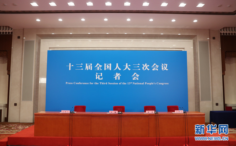 十三屆全國人大三次會(huì)議于5月24日(星期日)下午3時(shí)在人民大會(huì)堂新聞發(fā)布廳舉行記者會(huì),邀請國務(wù)委員兼外交部長王毅就“中國外交政策和對外關(guān)系”相關(guān)問題回答中外記者提問。為有效防控疫情,共同維護(hù)公共衛(wèi)生與健康,記者會(huì)將采用網(wǎng)絡(luò)視頻形式進(jìn)行。新華網(wǎng)現(xiàn)場直播。圖為記者會(huì)現(xiàn)場。新華網(wǎng) 翟子赫 攝