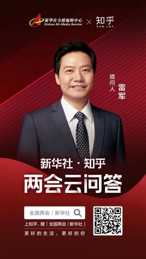 今年全國兩會(huì)期間,新華社聯(lián)合知乎發(fā)起《兩會(huì)云問答》,鐘南山、雷軍、姚明、張文宏、雷佳、郎朗首次跨界“云”問答。企業(yè)家雷軍的問題是:未來幾年,科技領(lǐng)域會(huì)有哪些重大突破?將為哪些行業(yè)帶來新機(jī)遇?