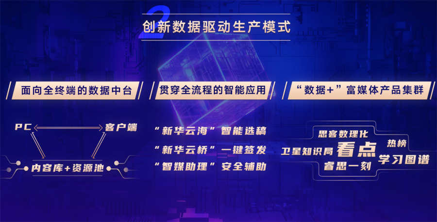 再造升級后的新華網(wǎng)突出“技術引領”,以“數(shù)據(jù)”為核心生產(chǎn)要素,為內容制作、聚合分發(fā)、用戶運營等提供全流程支撐,實現(xiàn)生產(chǎn)模式“由外而內”的變革。