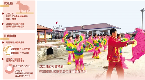 龍江縣是著名的雜糧產區(qū)、畜牧大縣。如今,龍江和牛已成為龍江縣畜牧產業(yè)的一張名片,帶領群眾走上致富路?!拔覀冄芯恐贫恕陡邫n肉牛優(yōu)勢特色產業(yè)集群建設方案》,從2016年起出臺了扶持政策。”龍江縣委副書記孫立軍告訴記者,當地引導企業(yè)與農戶合作養(yǎng)牛,農戶每購買兩頭母牛,政府會給予一定的補貼款。此外,政府還向企業(yè)采購凍精幫助農戶繁育小牛,小牛犢生長到6個月達標后,由企業(yè)統(tǒng)一收購,價格在1.2萬元至1.4萬元不等。