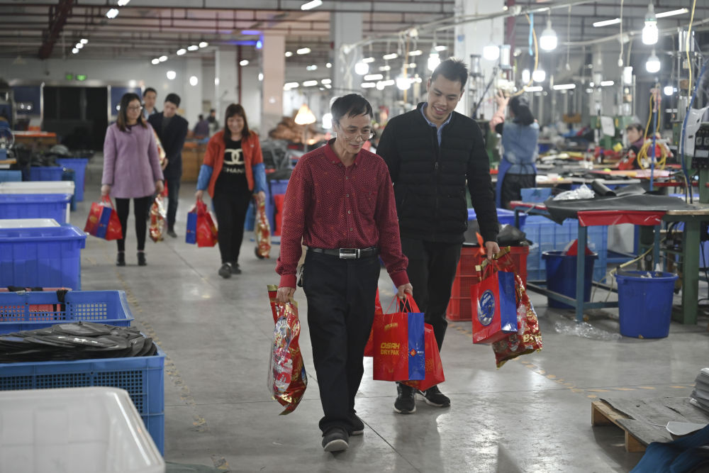 在福建省福州市閩侯縣一家戶外用品工廠,除了政府出臺的補貼政策之外,企業(yè)還為留下來的90多名工人發(fā)放了年貨大禮包,這些人中就包括張良國。