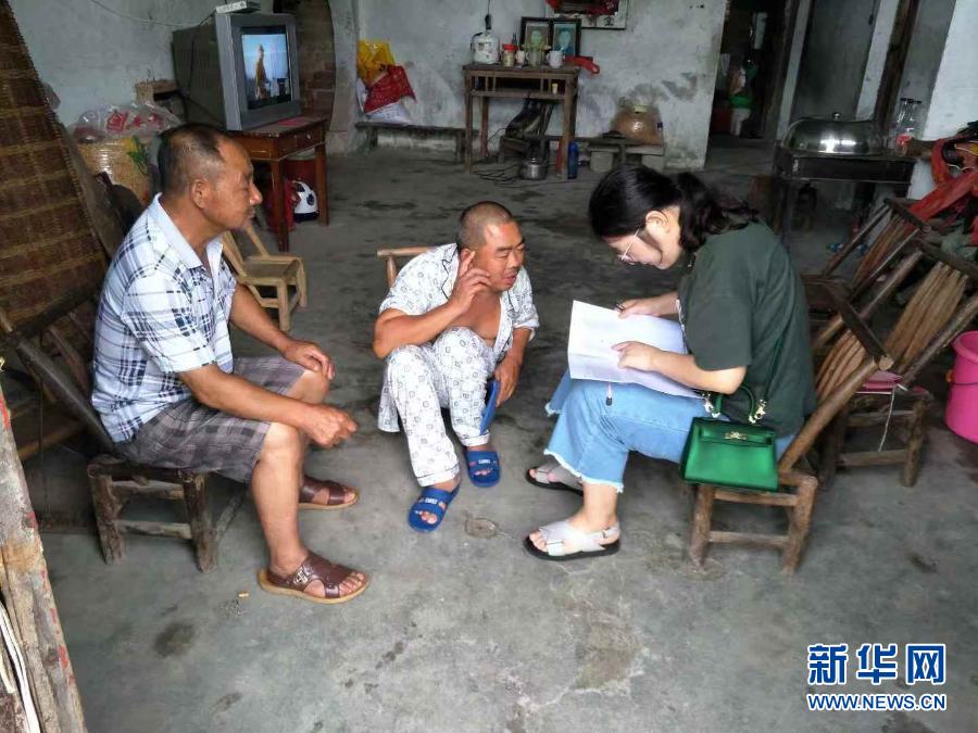 樊貞子(右)在走訪貧困戶(資料照片)。新華社發(fā)(修水縣委宣傳部供圖)