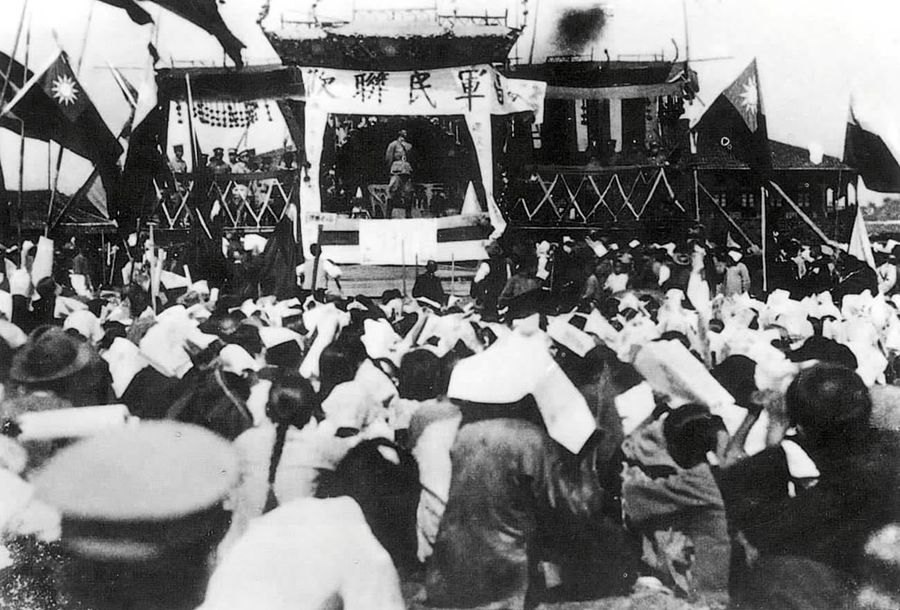 圖為北伐軍攻克武昌,武漢軍民舉行聯(lián)歡大會(huì) 新華社圖片