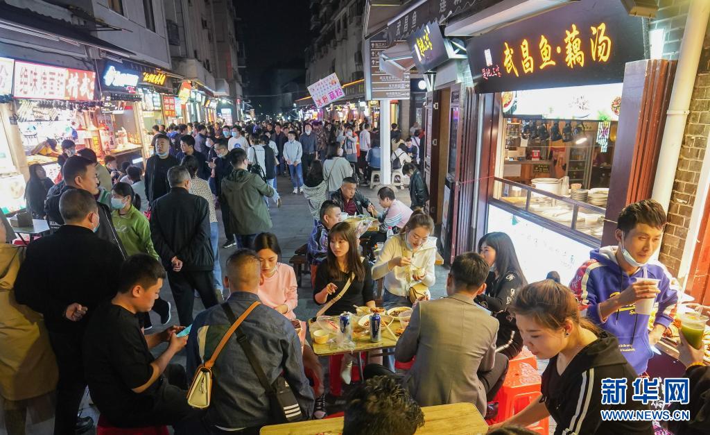 3月28日,人們在武漢市著名的小吃街戶部巷休閑消費。新華社記者 程敏 攝