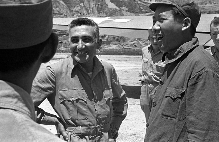 1944年,毛澤東同志和馬海德在延安。在抗日戰(zhàn)爭(zhēng)和解放戰(zhàn)爭(zhēng)期間,馬海德曾接待過(guò)許多到延安訪問(wèn)的外國(guó)記者、外交官、軍人,包括1944年駐華美軍司令史迪威將軍派駐延安的美軍觀察組。 新華社圖片