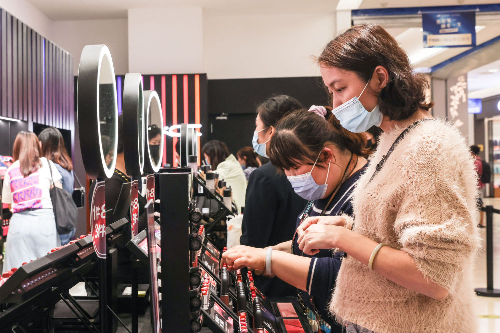 消費(fèi)者在??谌赵聫V場免稅店購物。(新華社記者張麗蕓2021年3月25日攝)