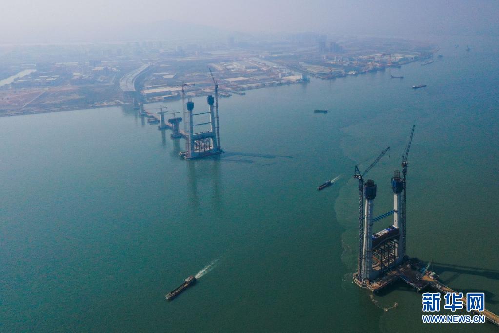 距此正北38公里,內(nèi)伶仃洋里,連接珠江兩岸的又一超級跨海工程建設正如火如荼——深中通道初具規(guī)模。在中山市珠江西岸的馬鞍島旁,一排巨大橋墩延伸向水天一色處,遠處伶仃洋大橋主塔已施工至210米高程,中山大橋主塔已施工至150米高程……