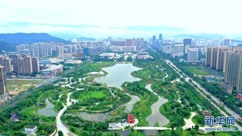 龍巖市主城區(qū)龍津湖公園一景(5月14日攝,無人機照片)。新華社發(fā)