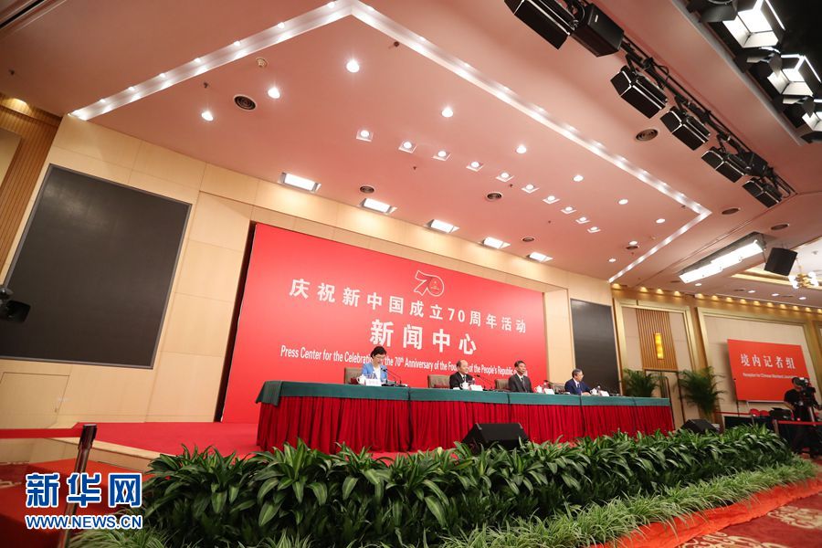 9月24日,慶祝中華人民共和國(guó)成立70周年活動(dòng)新聞中心在北京梅地亞中心二層新聞發(fā)布廳舉辦第一場(chǎng)新聞發(fā)布會(huì)。圖為新聞發(fā)布會(huì)現(xiàn)場(chǎng)。新華網(wǎng)記者 陳競(jìng)超 攝
