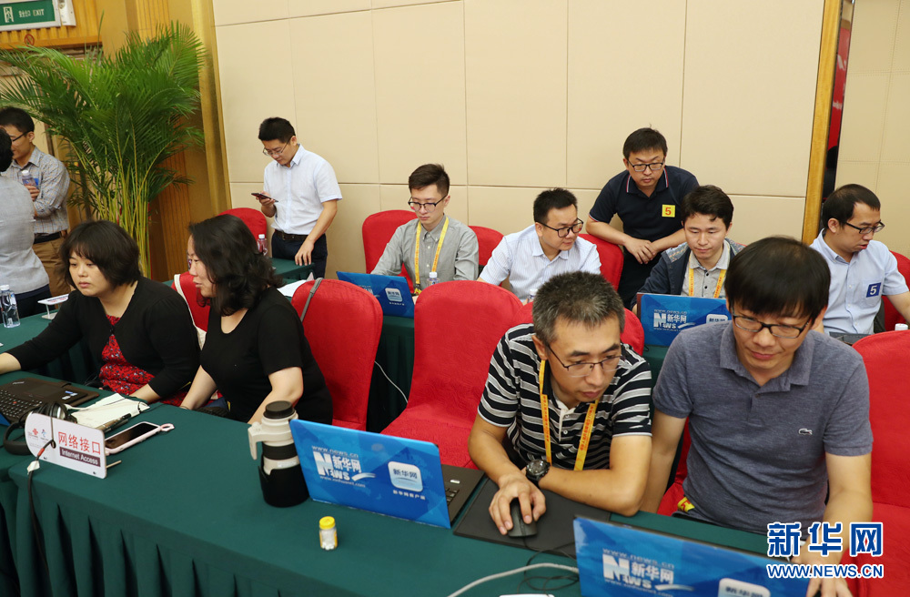 9月27日,慶祝中華人民共和國成立70周年活動(dòng)新聞中心在梅地亞中心二層新聞發(fā)布廳舉辦第三場新聞發(fā)布會(huì),中央農(nóng)村工作領(lǐng)導(dǎo)小組辦公室主任、農(nóng)業(yè)農(nóng)村部部長韓長賦,國務(wù)院扶貧開發(fā)領(lǐng)導(dǎo)小組辦公室主任劉永富介紹全面建成小康社會(huì),扎實(shí)推進(jìn)脫貧攻堅(jiān)和鄉(xiāng)村振興,并回答記者提問。圖為新華網(wǎng)對(duì)發(fā)布會(huì)進(jìn)行現(xiàn)場直播。新華網(wǎng) 陳杰 攝