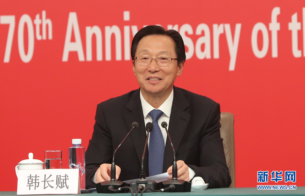 9月27日,慶祝中華人民共和國成立70周年活動新聞中心在梅地亞中心二層新聞發(fā)布廳舉辦第三場新聞發(fā)布會,中央農(nóng)村工作領(lǐng)導小組辦公室主任、農(nóng)業(yè)農(nóng)村部部長韓長賦,國務院扶貧開發(fā)領(lǐng)導小組辦公室主任劉永富介紹全面建成小康社會,扎實推進脫貧攻堅和鄉(xiāng)村振興,并回答記者提問。圖為韓長賦介紹有關(guān)情況。新華網(wǎng) 陳杰 攝