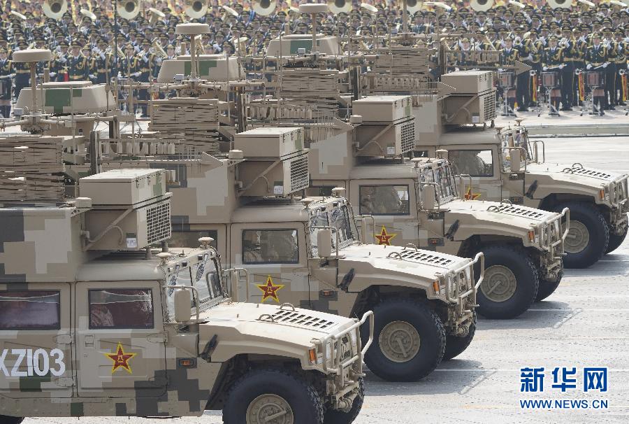 當(dāng)日上午,長安街上鐵流滾滾,16輛配有形狀各異天線車輛組成的方隊格外引人注目。受閱的信息偵測、數(shù)據(jù)干擾等信息作戰(zhàn)車組,是我國自主研發(fā)的新一代信息作戰(zhàn)裝備,具有破擊節(jié)點(diǎn)、癱瘓體系等性能。