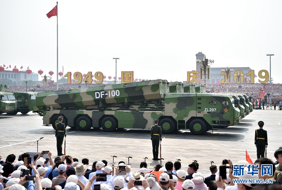 10月1日上午,慶祝中華人民共和國成立70周年大會在北京天安門廣場隆重舉行。這是長劍-100巡航導(dǎo)彈方隊。新華社記者 李鑫 攝
