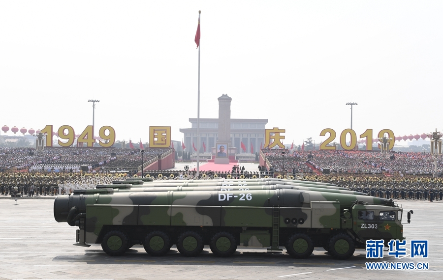 新華社北京10月1日電(記者張選杰、李兵峰)在1日受閱的戰(zhàn)略打擊模塊中,第三個亮相的是東風(fēng)-26核常兼?zhèn)鋵?dǎo)彈方隊。