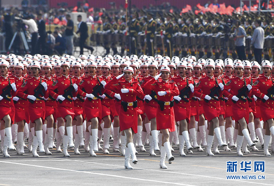 10月1日上午,慶祝中華人民共和國成立70周年大會在北京天安門廣場隆重舉行。這是群眾游行。 新華社記者 殷剛 攝