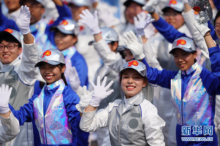 10月1日上午,慶祝中華人民共和國成立70周年大會在北京天安門廣場隆重舉行。 這是群眾游行中的創(chuàng)新驅(qū)動方陣。 新華社記者 周密 攝