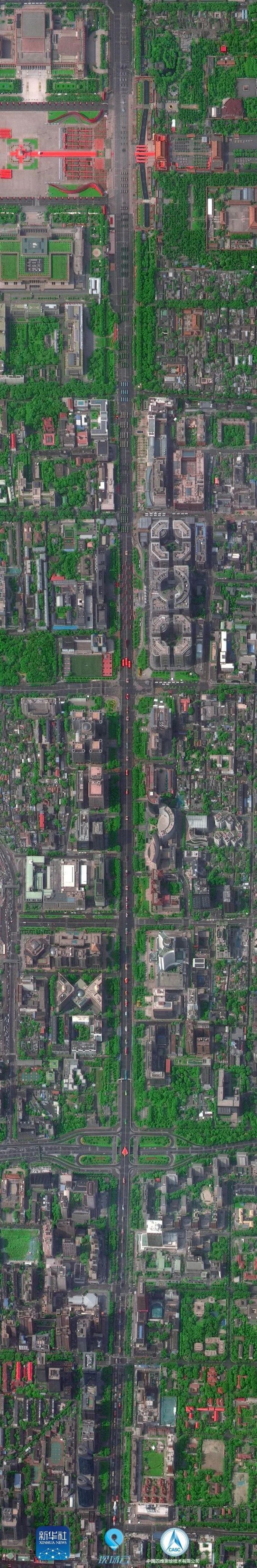 10月1日,“高景一號”拍攝的北京長安街全畫幅衛(wèi)星閱兵圖
