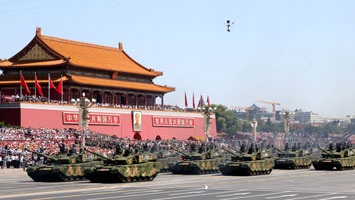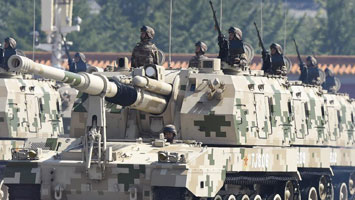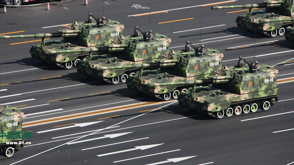 履帶自行火炮方隊(duì)通過天安門廣場(chǎng)
