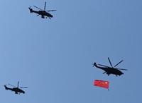- 70架直升機(jī)大機(jī)群密集編隊(duì)飛過天安門上空