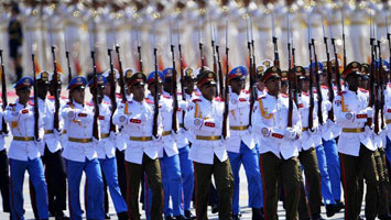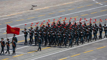 這是我國(guó)首次邀請(qǐng)外軍參加閱兵。白俄羅斯、古巴、埃及、哈薩克斯坦、吉爾吉斯斯坦、墨西哥、蒙古國(guó)、巴基斯坦、塞爾維亞、塔吉克斯坦、俄羅斯等11國(guó)派方隊(duì)參閱,每個(gè)方隊(duì)參閱人數(shù)為75人左右。阿富汗、柬埔寨、斐濟(jì)、老撾、瓦努阿圖、委內(nèi)瑞拉等6國(guó)派代表隊(duì)參閱,每個(gè)代表隊(duì)參閱人數(shù)為7人左右。
