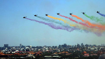 - 70架直升機(jī)組成的強(qiáng)大編隊(duì)最后通過天安門廣場(chǎng)上空
