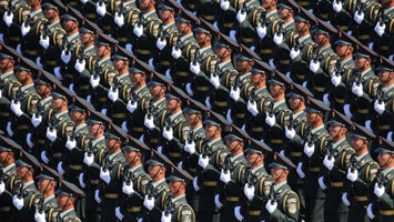 10個(gè)英模部隊(duì)方隊(duì)接受檢閱