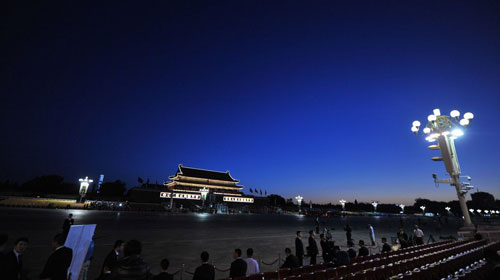 - 李克強(qiáng)、張德江、俞正聲、劉云山、王岐山、張高麗登上城樓,江澤民、胡錦濤登上城樓
