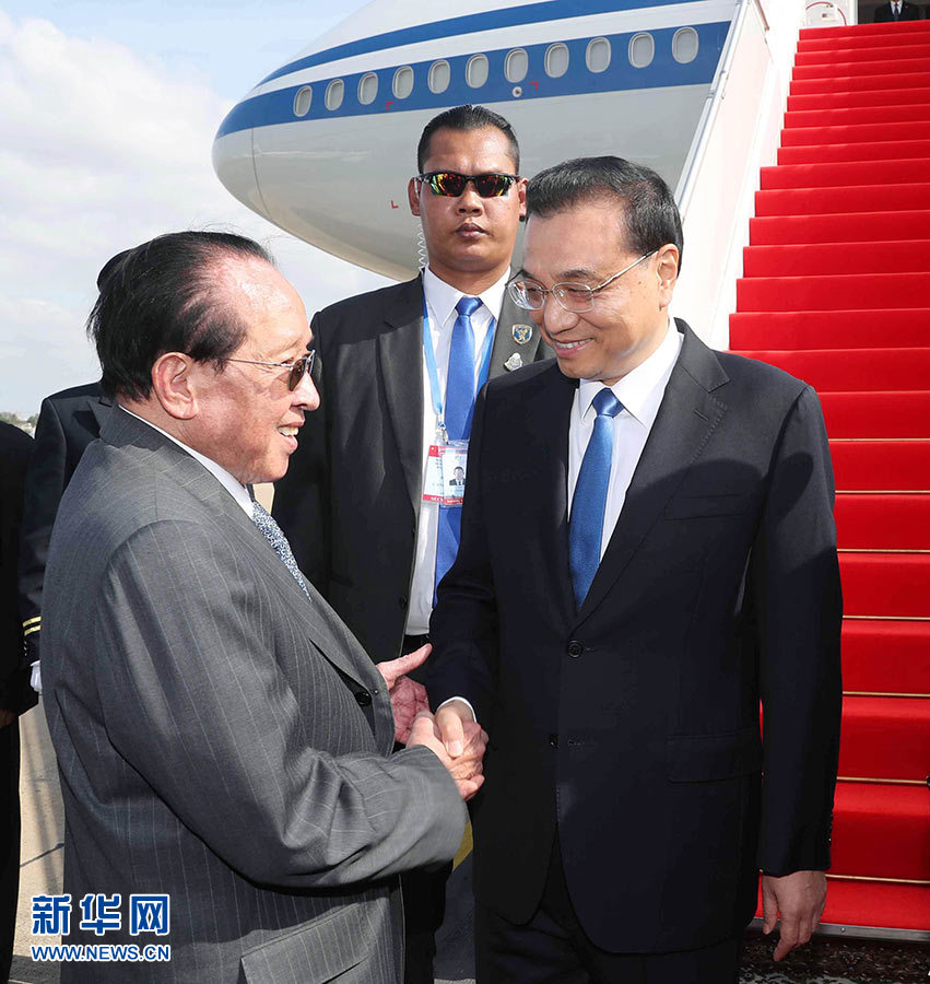 當(dāng)?shù)貢r(shí)間1月10日,國務(wù)院總理李克強(qiáng)乘專機(jī)抵達(dá)金邊,與柬埔寨、老撾、泰國、越南、緬甸領(lǐng)導(dǎo)人共同出席將在這里舉行的瀾滄江-湄公河合作第二次領(lǐng)導(dǎo)人會議。在出席會議后,李克強(qiáng)將應(yīng)柬埔寨首相洪森邀請對柬埔寨進(jìn)行正式訪問。新華社記者 劉衛(wèi)兵 攝