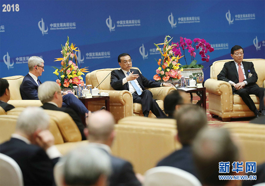3月26日,國(guó)務(wù)院總理李克強(qiáng)在北京會(huì)見(jiàn)出席中國(guó)發(fā)展高層論壇2018年年會(huì)的外方代表并同他們座談。 新華社記者 劉衛(wèi)兵 攝