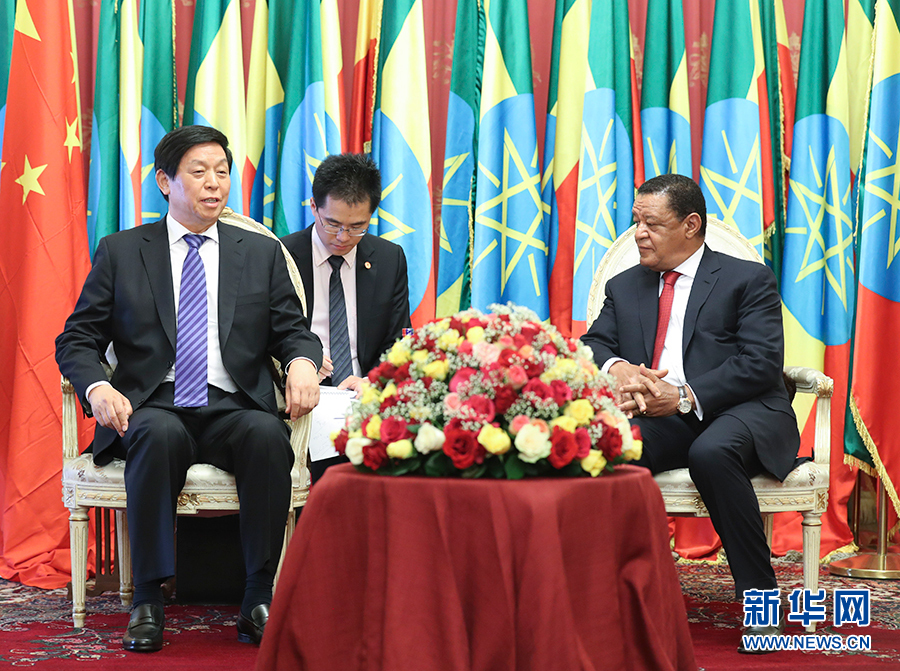 會(huì)見阿比時(shí),栗戰(zhàn)書就中國政治制度和發(fā)展道路與對(duì)方深入交流,介紹了中共十八大以來以習(xí)近平同志為核心的黨中央治國理政經(jīng)驗(yàn)和實(shí)踐。他說,五年前,習(xí)近平主席提出對(duì)非合作的真實(shí)親誠理念和正確義利觀,把中國自身發(fā)展同助力非洲發(fā)展結(jié)合起來,永遠(yuǎn)做非洲的真誠朋友和可靠伙伴。埃塞是中國在非洲的重要伙伴,雙方務(wù)實(shí)合作在中非乃至南南合作中都具有示范意義。中方堅(jiān)定支持埃塞走符合本國國情的發(fā)展道路,支持埃塞為發(fā)展經(jīng)濟(jì)、維護(hù)穩(wěn)定所作的努力。希望雙方繼續(xù)加強(qiáng)在“一帶一路”和中非合作論壇框架下的合作,發(fā)揮好亞吉鐵路的經(jīng)濟(jì)大動(dòng)脈作用,積極打造沿線經(jīng)濟(jì)走廊,推進(jìn)工業(yè)園區(qū)建設(shè)、油氣資源開發(fā)等合作,培育兩國務(wù)實(shí)合作新亮點(diǎn)。歡迎埃塞積極參與11月在上海舉辦的首屆中國國際進(jìn)口博覽會(huì)。希望雙方加強(qiáng)在非洲和平與安全等國際和地區(qū)問題上的溝通協(xié)調(diào),加大在涉及彼此核心利益和重大關(guān)切問題上的相互支持。阿比說,埃塞同中國的友好關(guān)系堅(jiān)如磐石。習(xí)近平主席治國理政思想對(duì)埃塞和非洲國家發(fā)展都具有重要指引和借鑒意義。實(shí)施中非“十大合作計(jì)劃”、共建“一帶一路”給非洲帶來了實(shí)實(shí)在在的利益。愿同中方繼續(xù)深化在基礎(chǔ)設(shè)施建設(shè)、金融、旅游、人力資源培訓(xùn)等領(lǐng)域合作。
