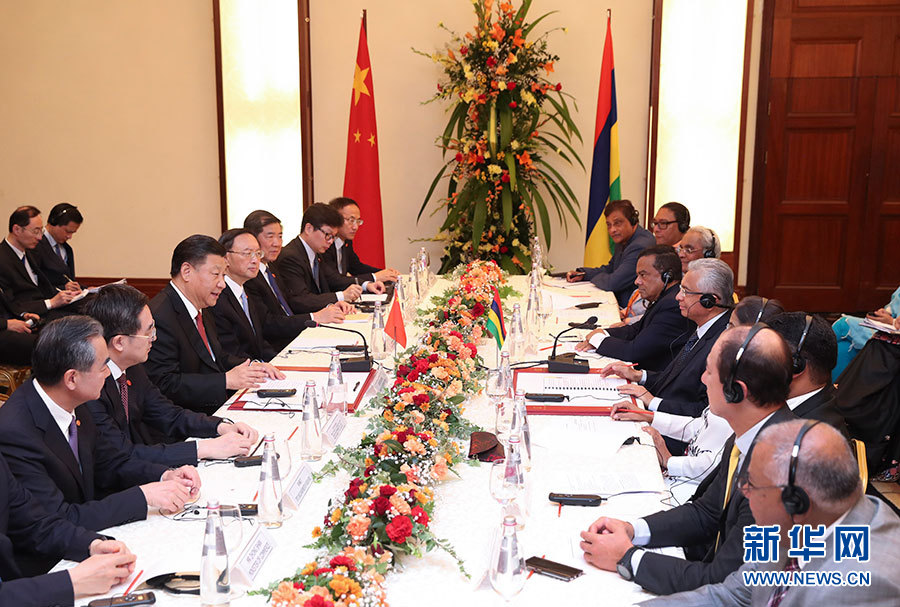 習近平積極評價毛里求斯獨立50年來取得的不凡成就,贊賞毛里求斯歷屆政府一貫秉持對華友好政策。習近平指出,中毛兩國和兩國人民友誼深厚、感情親近。中毛建交46年來,雙方政治互信不斷加深,各領(lǐng)域交流合作成果豐碩。中方愿同毛方始終做好朋友和好伙伴,推動中毛友好合作關(guān)系不斷邁上新臺階。
