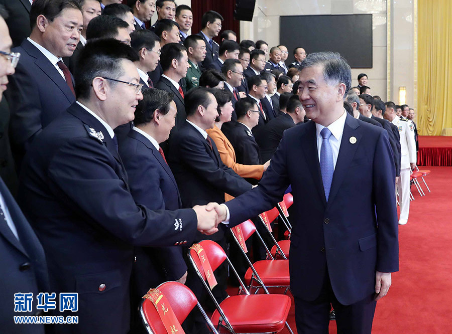 9月19日,中共中央政治局常委、全國(guó)政協(xié)主席、中央代表團(tuán)團(tuán)長(zhǎng)汪洋率代表團(tuán)部分成員分別赴寧夏軍區(qū)、武警寧夏總隊(duì)慰問,并會(huì)見自治區(qū)政法系統(tǒng)代表。這是汪洋會(huì)見自治區(qū)政法系統(tǒng)代表。 新華社記者 劉衛(wèi)兵 攝
