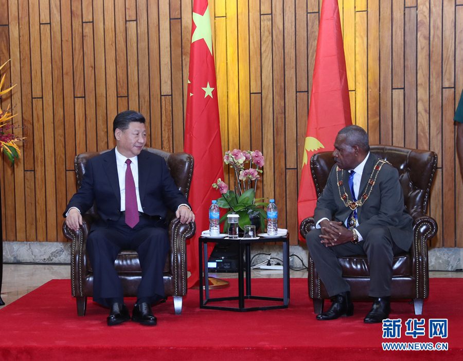 11月16日,國家主席習(xí)近平在莫爾茲比港會見巴布亞新幾內(nèi)亞總督達(dá)達(dá)埃。新華社記者 鞠鵬 攝
