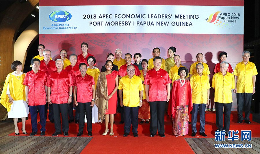 11月17日,國家主席習近平在莫爾茲比港出席巴布亞新幾內(nèi)亞總理奧尼爾和夫人為出席亞太經(jīng)合組織第二十六次領(lǐng)導人非正式會議的各成員經(jīng)濟體領(lǐng)導人、代表及配偶舉行的歡迎晚宴。這是晚宴前集體合影。 新華社記者 謝環(huán)馳 攝