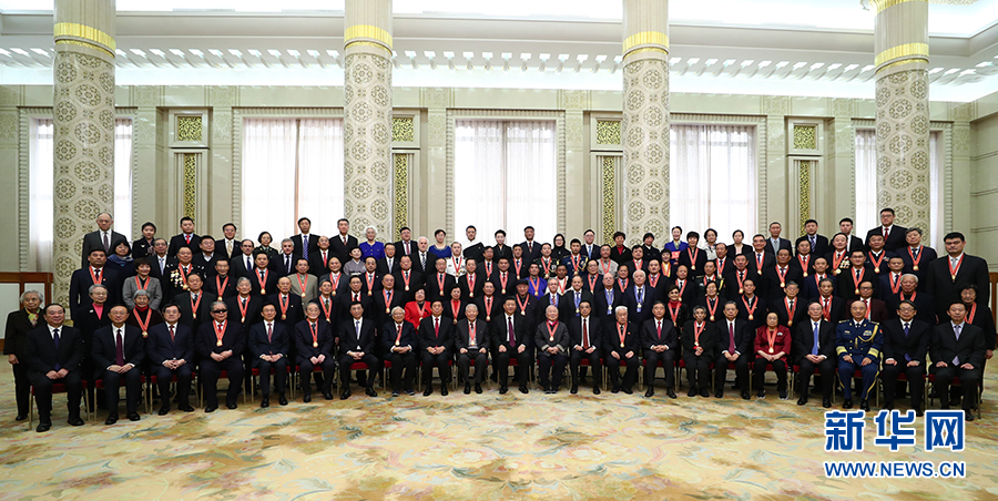 慶祝大會(huì)結(jié)束后,習(xí)近平等會(huì)見了受表彰人員及親屬代表,并同大家合影留念。