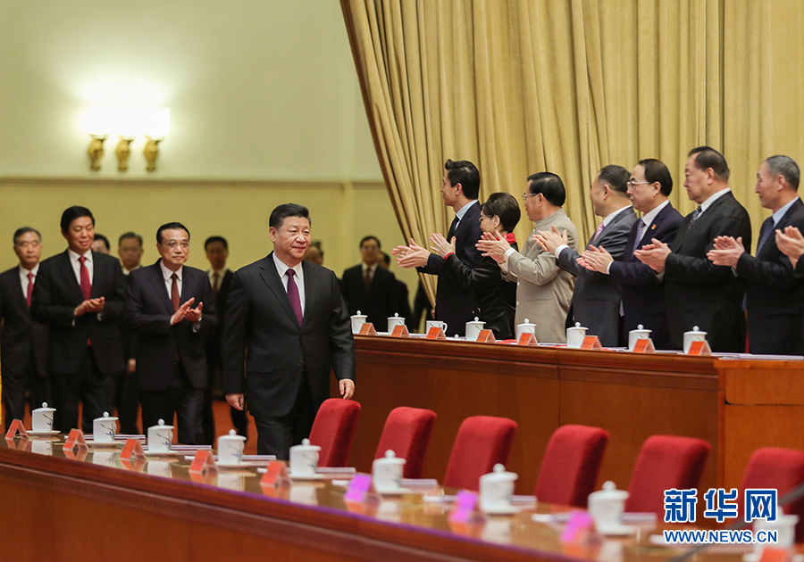 當(dāng)習(xí)近平等領(lǐng)導(dǎo)同志進(jìn)入會(huì)場(chǎng),全場(chǎng)起立,熱烈鼓掌。