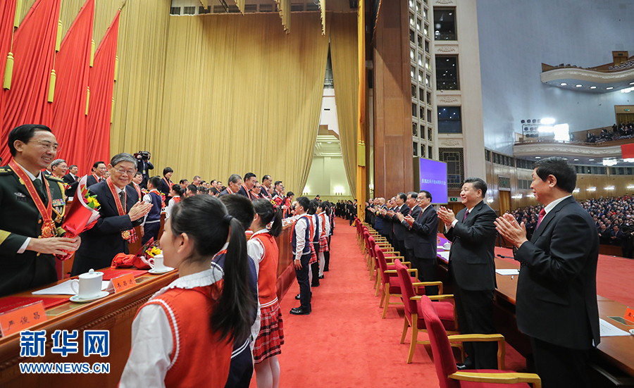 12月18日,慶祝改革開放40周年大會(huì)在北京人民大會(huì)堂隆重舉行。中共中央總書記、國(guó)家主席、中央軍委主席習(xí)近平在大會(huì)上發(fā)表重要講話。這是習(xí)近平等為獲得改革先鋒稱號(hào)人員代表頒獎(jiǎng)。 新華社記者 燕雁 攝