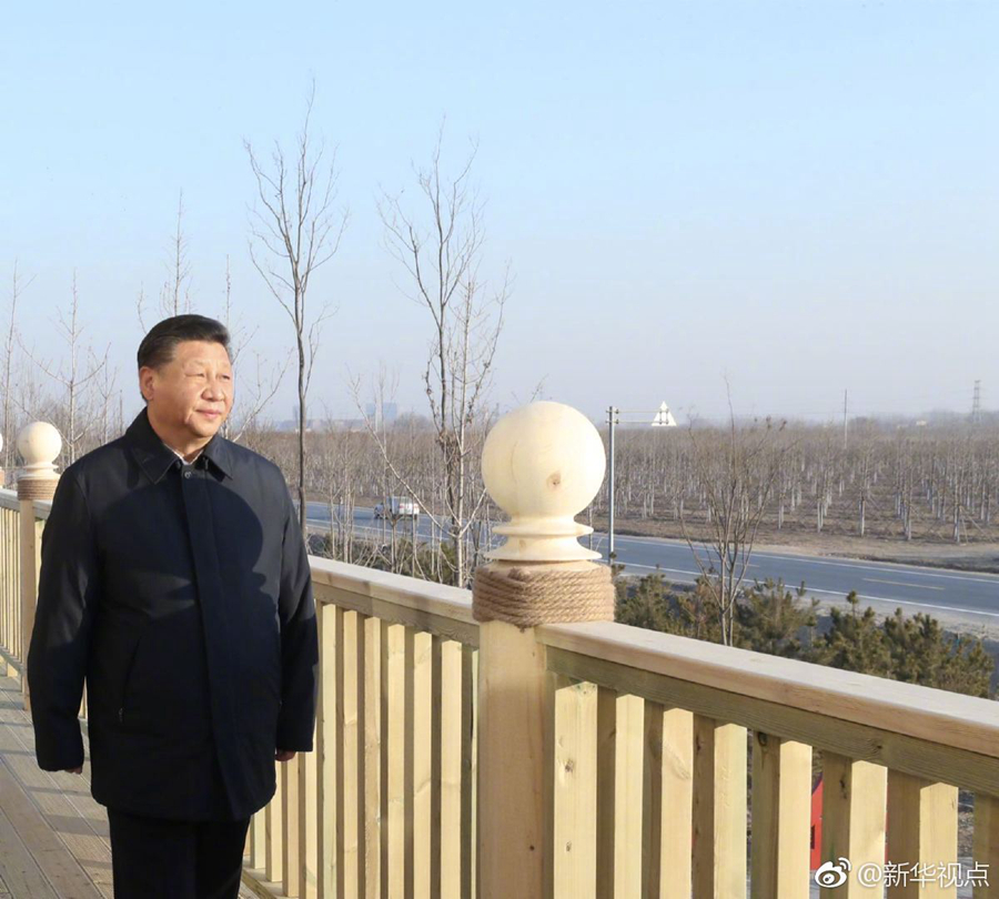 雄安新區(qū)堅持生態(tài)優(yōu)先、綠色發(fā)展,率先啟動生態(tài)基礎(chǔ)設(shè)施建設(shè)和環(huán)境整治,目前已完成11萬畝“千年秀林”建設(shè)。16日下午,習(xí)近平總書記來到“千年秀林”大清河片林一區(qū)造林區(qū)域,乘車穿行林區(qū)察看林木長勢,登上秀林驛站二層平臺遠(yuǎn)眺林區(qū)全貌,同當(dāng)?shù)刈o林員代表親切交流。他說,藍(lán)天、碧水、綠樹,藍(lán)綠交織,將來生活的最高標(biāo)準(zhǔn)就是生態(tài)好。雄安新區(qū)過去有一定的基礎(chǔ),現(xiàn)在搞“千年秀林”,將來這里一定是最宜居的地方。綠水青山就是金山銀山,雄安新區(qū)就要靠這樣的生態(tài)環(huán)境來體現(xiàn)價值、增加吸引力。(記者張曉松、謝環(huán)馳、鞠鵬)?