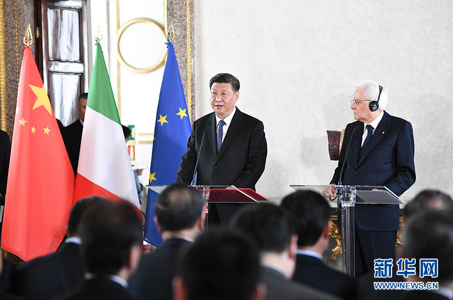習近平強調(diào),明年是中意建交50周年,兩國將互辦文化旅游年,各領(lǐng)域合作將迎來新的機遇。中方愿同意大利各界一道努力,推動兩國關(guān)系在互利共贏大路上行穩(wěn)致遠,為促進中歐互聯(lián)互通乃至世界發(fā)展繁榮作出新的貢獻。希望中意企業(yè)界、文化界人士在各自領(lǐng)域為兩國合作貢獻更多智慧和力量。