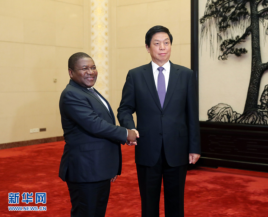 4月24日,全國人大常委會委員長栗戰(zhàn)書在北京人民大會堂會見莫桑比克總統(tǒng)紐西。 新華社記者劉衛(wèi)兵攝