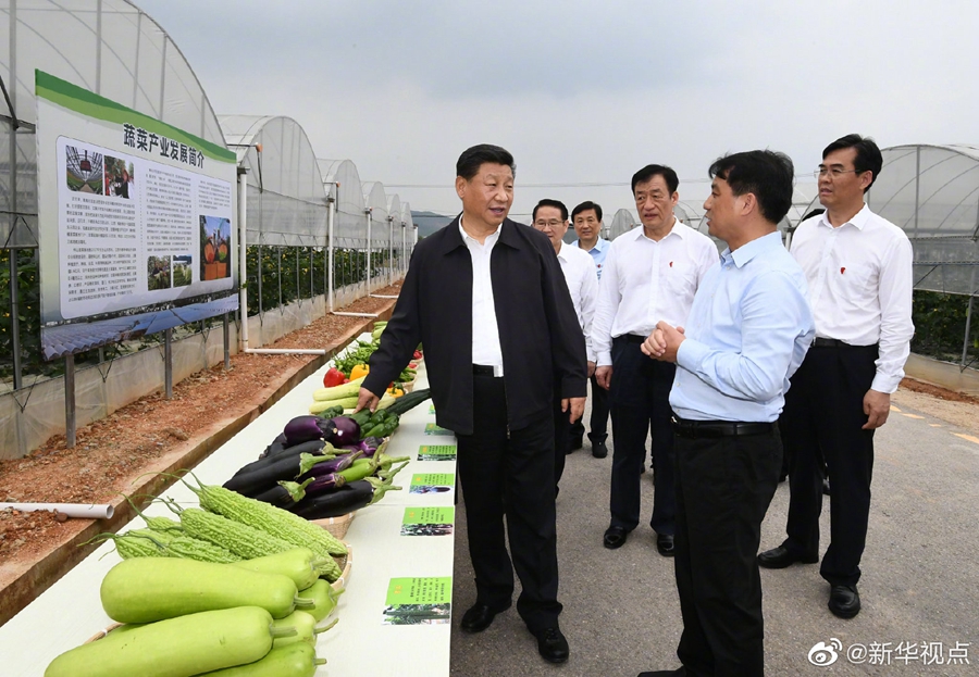 20日下午,習近平總書記來到江西省于都縣梓山富硒蔬菜產(chǎn)業(yè)園考察調(diào)研。產(chǎn)業(yè)園以“龍頭企業(yè)+合作社+農(nóng)戶和貧困戶”發(fā)展模式,帶動了當?shù)卮迕衩撠氈赂弧?吹娇倳泚砹?,正在大棚里勞作的鄉(xiāng)親們激動地說:“感謝黨的好政策,讓我們過上了幸福生活!”習近平對鄉(xiāng)親們說:“共產(chǎn)黨就是為人民群眾謀幸福的,黨中央想的就是千方百計讓老百姓過上好日子。芝麻開花節(jié)節(jié)高,今后日子會更好!”(文字:張曉松 攝影:謝環(huán)馳、鞠鵬)