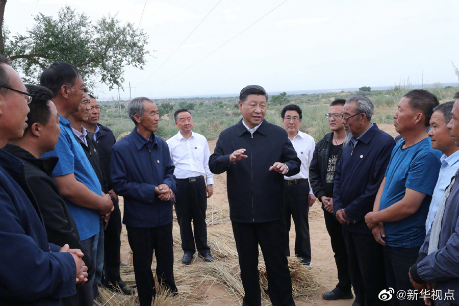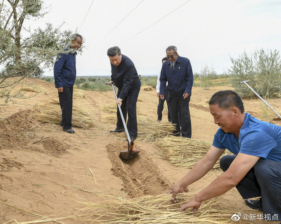 正在甘肅考察的習近平總書記,21日來到古浪縣八步沙林場,察看林場風貌,聽取武威市防沙治沙情況匯報和八步沙林場“六老漢”三代人治沙造林的感人事跡介紹,還拿起一把開溝犁,參與到治沙勞動中。習近平強調(diào),我們要實現(xiàn)從富起來到強起來,就要把生態(tài)文明建設(shè)當作大事來抓,建設(shè)美麗中國。當前,生態(tài)文明觀念日益深入人心,要繼續(xù)發(fā)揚“六老漢”的當代愚公精神,再接再厲,再立新功,久久為功,讓綠色的長城堅不可摧。(文字記者:張曉松、朱基釵 攝影記者:鞠鵬、謝環(huán)馳)?