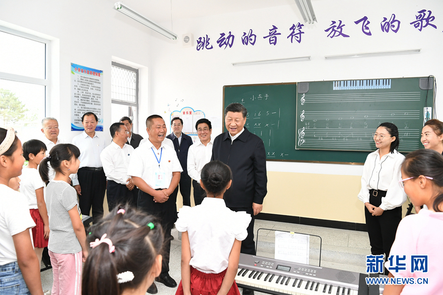 8月19日至22日,中共中央總書記、國家主席、中央軍委主席習近平在甘肅考察。這是21日上午,習近平在武威市古浪縣黃花灘生態(tài)移民區(qū)富民新村富民小學的音樂教室,認真觀看正在進行的音樂課教學。 新華社記者 謝環(huán)馳 攝