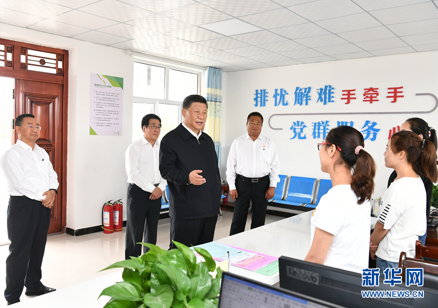 8月19日至22日,中共中央總書記、國家主席、中央軍委主席習近平在甘肅考察。這是21日上午,習近平在武威市古浪縣黃花灘生態(tài)移民區(qū)富民新村黨群服務中心考察。 新華社記者 謝環(huán)馳 攝