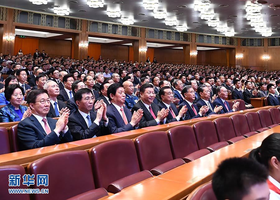 9月29日,慶祝中華人民共和國成立70周年大型文藝晚會(huì)《奮斗吧 中華兒女》在北京人民大會(huì)堂舉行。習(xí)近平、李克強(qiáng)、栗戰(zhàn)書、汪洋、王滬寧、趙樂際、韓正、王岐山等黨和國家領(lǐng)導(dǎo)人同4000多名觀眾一起觀看演出。 新華社記者 謝環(huán)馳 攝